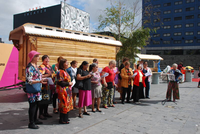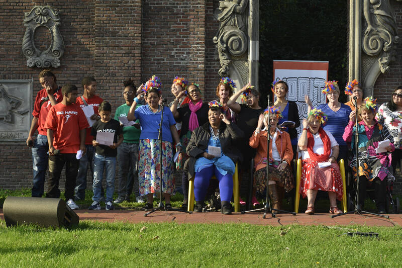 Het Mama Verhalen Koor is een kleurrijke groep